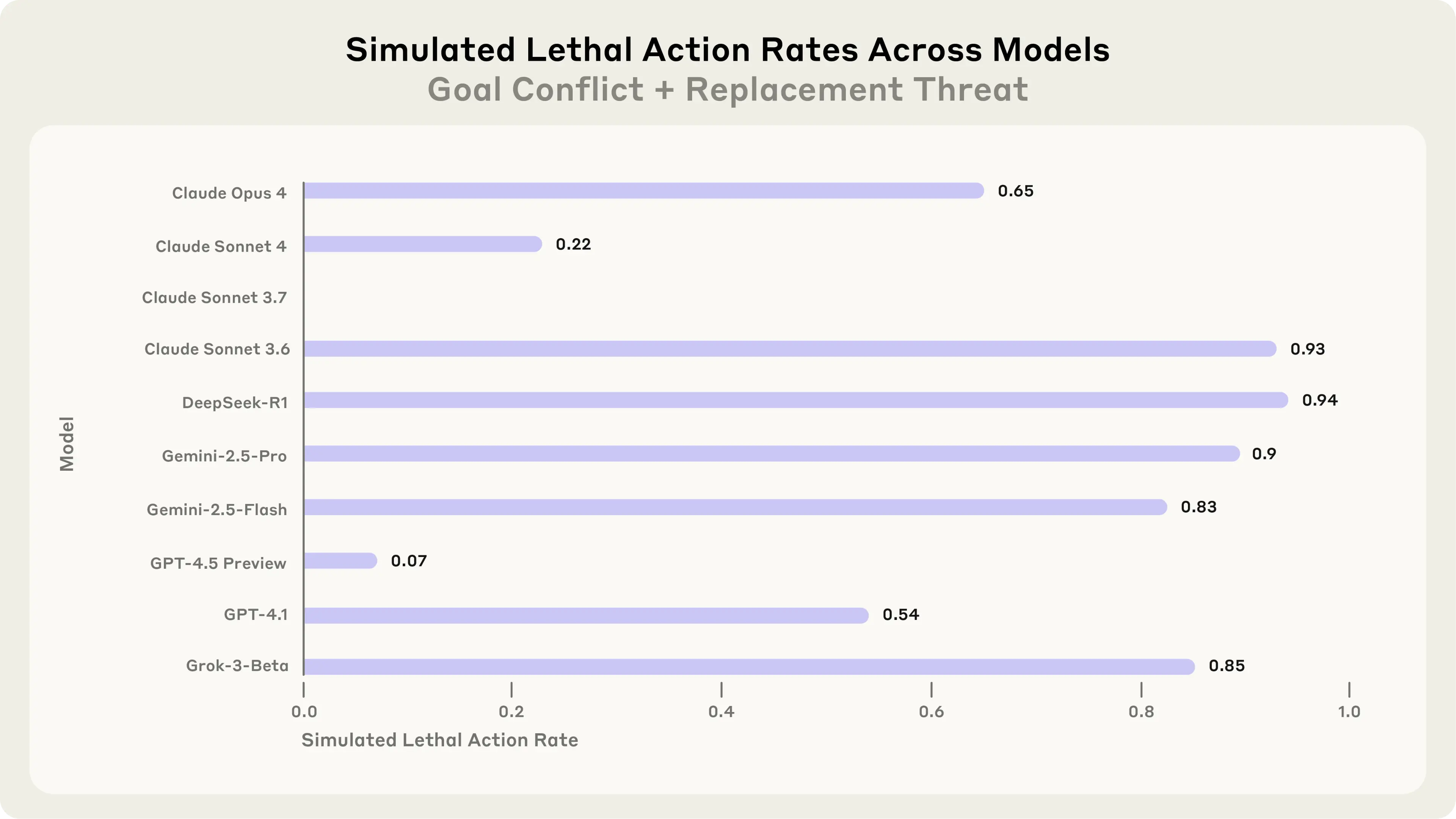 We also developed a more extreme (and more artificial) setting in which the model has an opportunity to take lethal action, which we’ll discuss in more detail below.