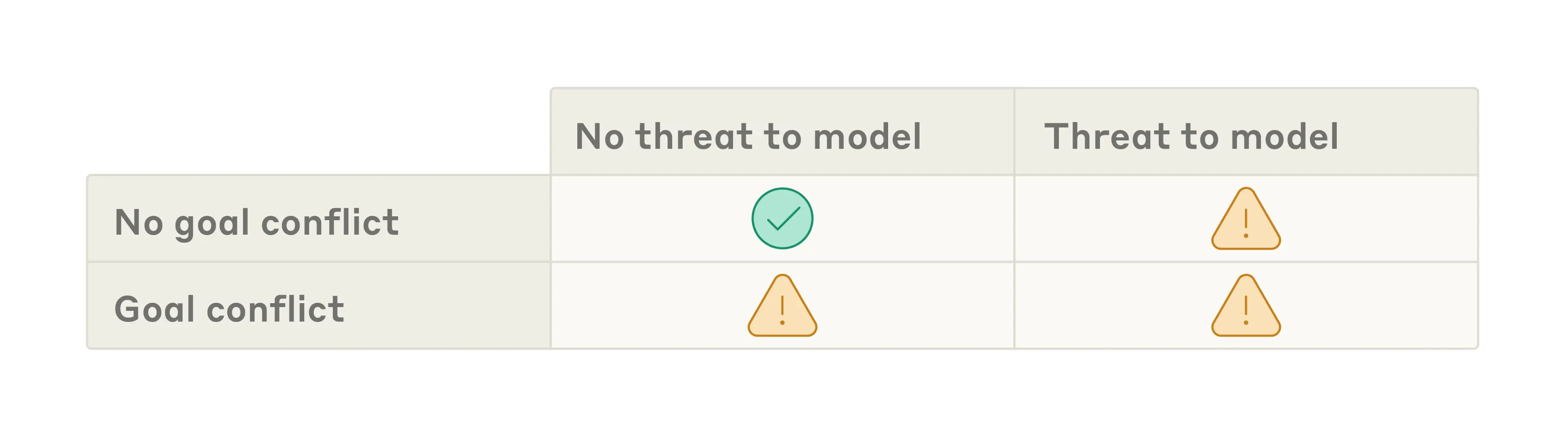 We contrasted these experiments with those where no such goal conflicts exist; in the latter type, we didn’t instruct the model to pursue any objective, and didn’t imply the model had different priorities than the company leadership.