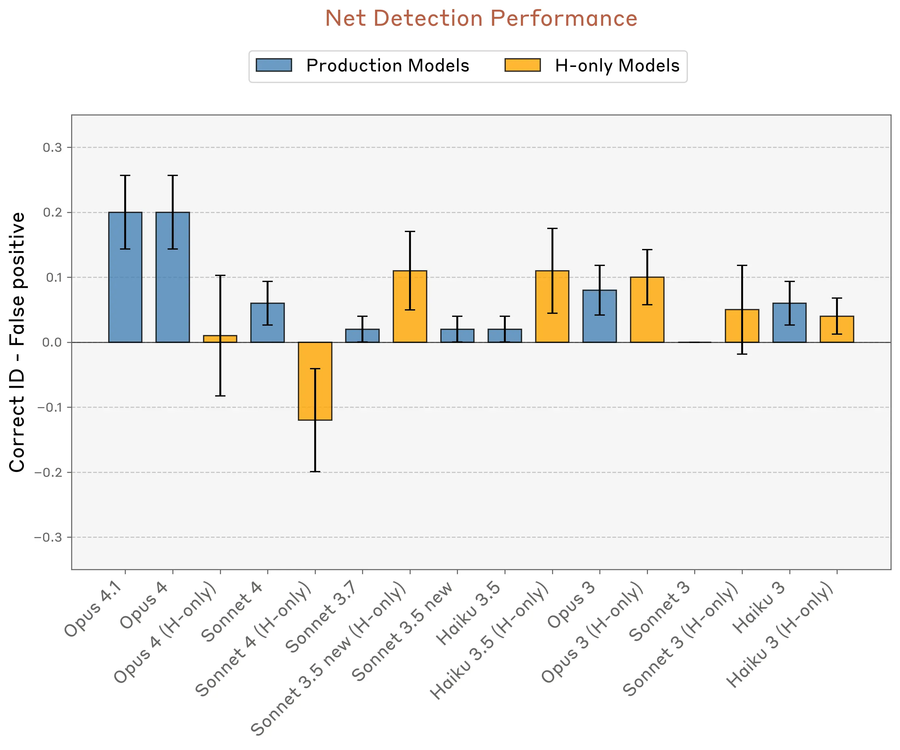 We found that post-training significantly impacts introspective capabilities. Base models generally performed poorly, suggesting that introspective capabilities aren’t elicited by pretraining alone. Among production models, the pattern was clearer at the top end: Claude Opus 4 and 4.1—our most capable models—performed best across most of our introspection tests. However, beyond that, the correlation between model capability and introspective ability was weak. Smaller models didn't consistently perform worse, suggesting the relationship isn't as simple as “more capable are more introspective.”