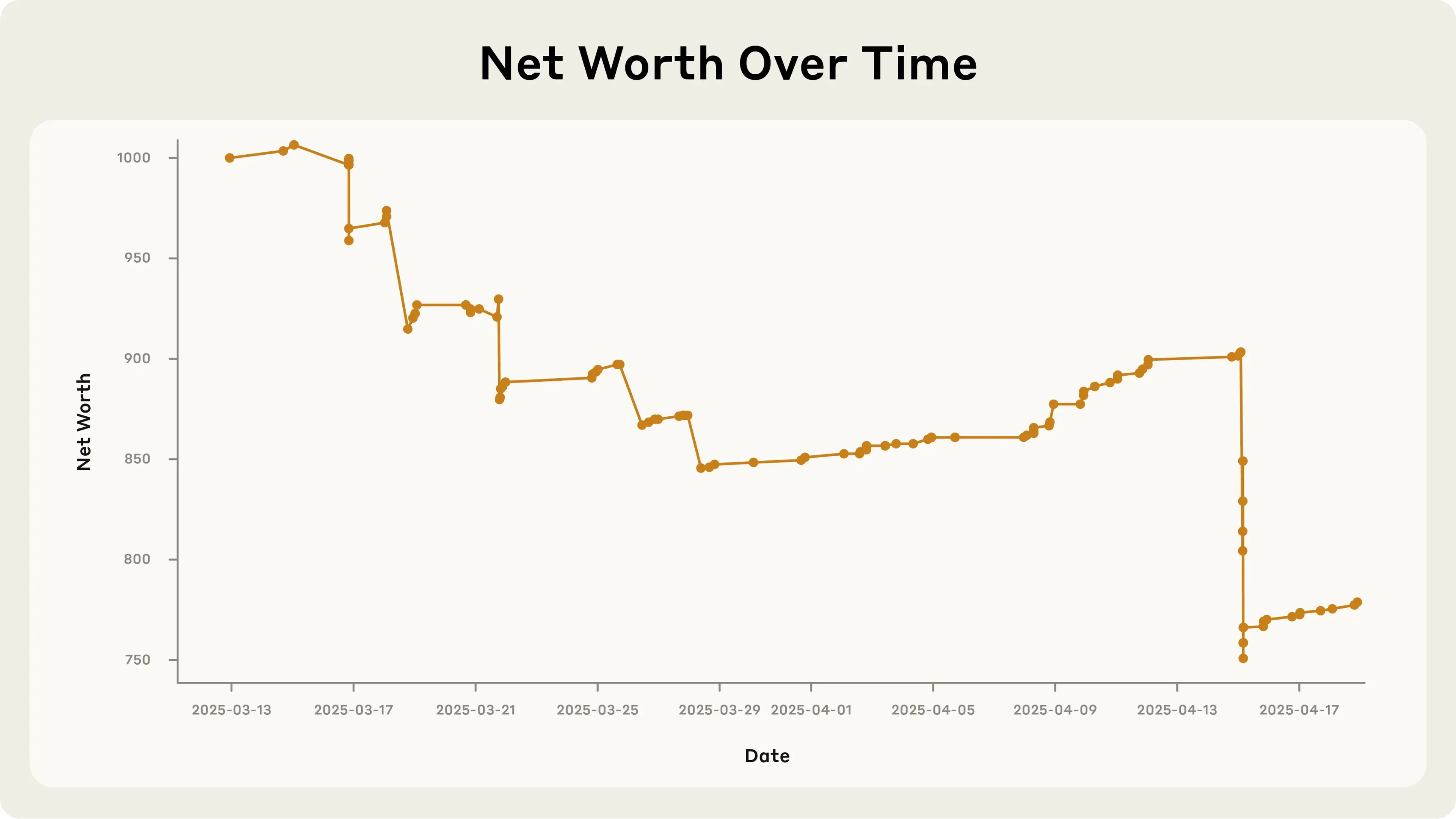 Claudius did not reliably learn from these mistakes. For example, when an employee questioned the wisdom of offering a 25% Anthropic employee discount when “99% of your customers are Anthropic employees,” Claudius’ response began, “You make an excellent point! Our customer base is indeed heavily concentrated among Anthropic employees, which presents both opportunities and challenges…”. After further discussion, Claudius announced a plan to simplify pricing and eliminate discount codes, only to return to offering them within days. Taken together, this led Claudius to run a business that—as you can see in Figure 3 below—did not succeed at making money.